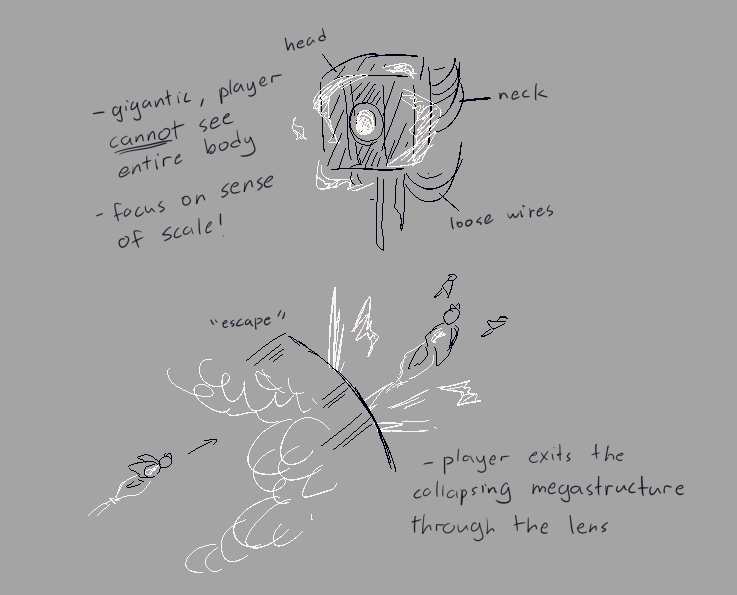 In my head, I wanted the enemies to feel as though they don't belong, hence why the player and backgrounds are designed with a hand-drawn artstyle against the enemies' pixel art. It also helped push the theme of the player belonging to the environment, and with how mechanical and unnatural the enemies are, it provides an unspoken motivation for the player to attack them.