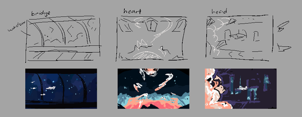 When tasked to create a 2D scrolling scene based on a game description about space travel, the first thought I had in mind was making my art and environment sea-inspired. I felt it would be a unique take compared to the classic rockets and meteors I often find online.